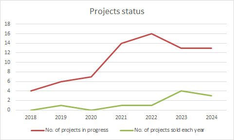 In 2019, Godwin had 6 projects in different stages of completion only 1 was sold within 2 years (May 2020)