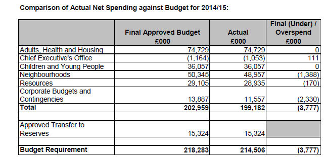 Extract from the 2014/15 Accounts showing the final position – £199,182 spent – Funding £214,506. This is the baseline position.