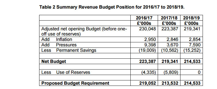On 3 February 2016 the proposed budget for 2016/17 is nearly the same as 2015/16 with modest reductions in the following years – still higher than 2014/15